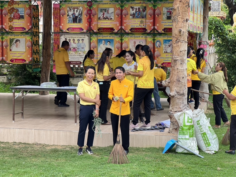 นายทองอินทร์ คลังดงเค็ง นายกองค์การบริหารส่วนตำบลหนองทุ่ม พร้อมด้วยคณะผู้บริหาร สมาชิกสภา ผอ.รพ.สต.บ้านหนองเสือ ผอ.ร.ร. ในเขตตำบลหนองทุ่ม ผู้นำชุมชน จิตอาสา พนักงานและเจ้าหน้าที่ เข้าร่วมกิจกรรมโครงการวัดประชารัฐ สร้างสุข สร้างสัปปายะด้วยวิถี 5 ส. วันศุกร์ที่ 25 กรกฎาคม 2568 ณ วัดบ้านหนองทุ่ม เนื่องในโอกาสวันเฉลิมพระชนมพรรษา พระบาทสมเด็จพระเจ้าอยู่หัว รัชกาลที่ 10